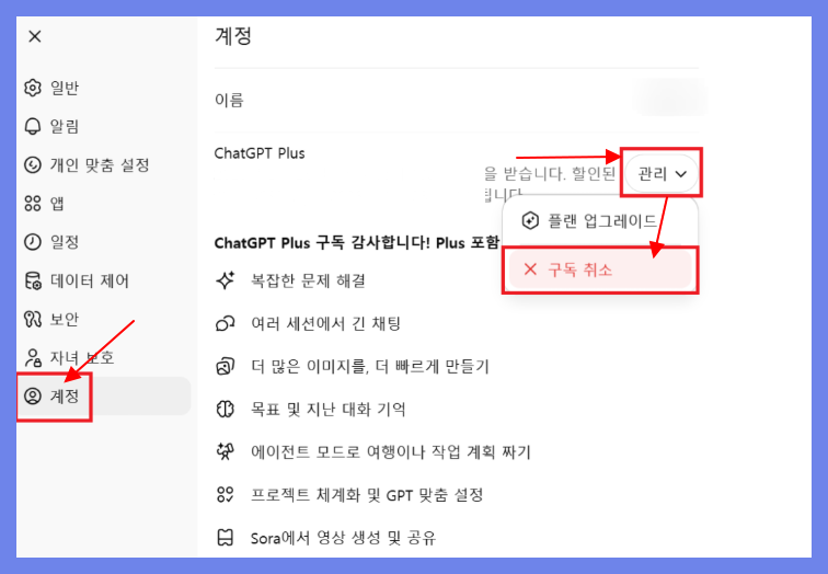 1. 챗GPT 플러스 구독 취소 PC 버전 방법